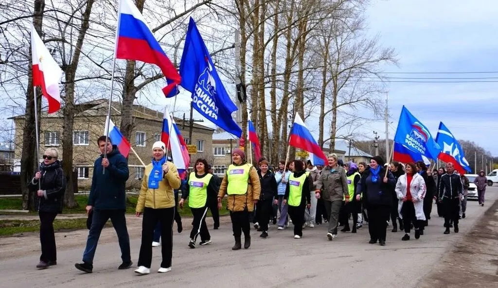 Ветеран спортивного движения района Василий Ефремов и учитель первой поселковой школы Лариса Карелова предложили активистам небольшую разминку. И несколько минут спустя участники праздника здоровья отправились в путь.
